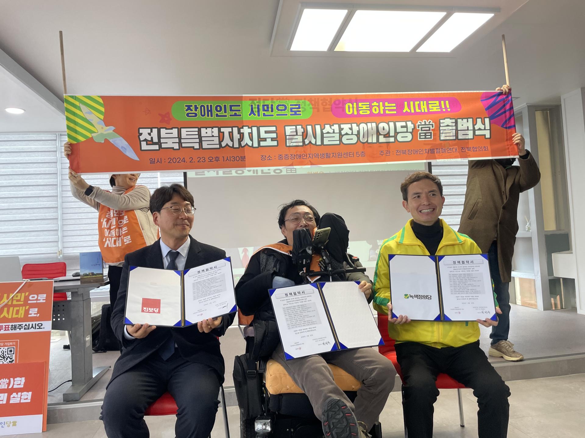 📍<탈시설장애인당當 전북도당 출범식/전북장애인차별철폐연대 총회> 2024년 총선, 장애인권리에 투표합니다.장애인도 시민으로 이동하는 시대로! 탈시설장애인당當 전북도당 출범식